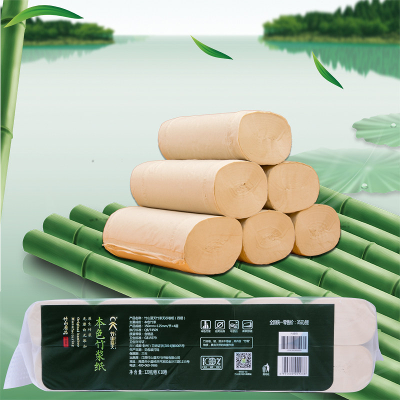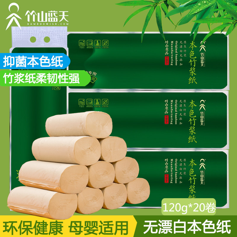 竹山蓝天 Прокативная бумага 4 -слоя 24 рулона оригинальной бамбуковой мякоть без основной туалетной бумаги Семейный наряд бумажные полотенце доступные туалетную бумагу Руинихи