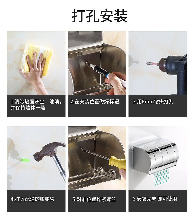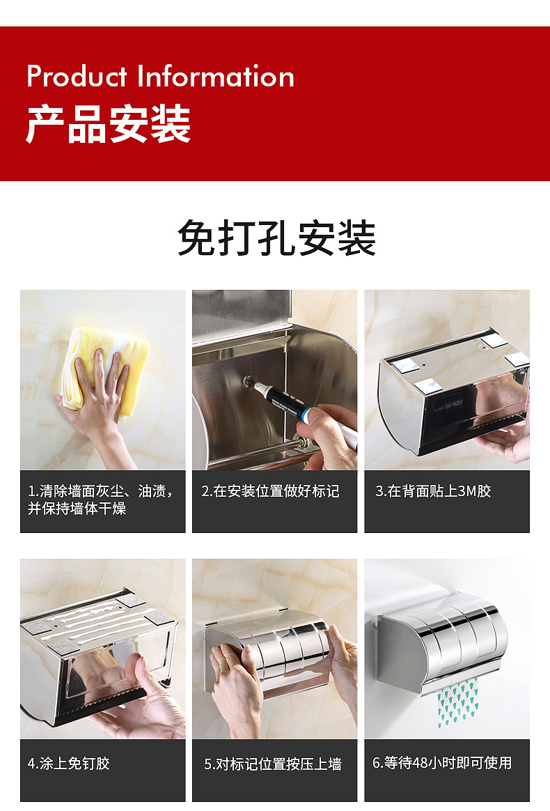 Туалетная бумажная коробка полотенца 304 Туалетная бумага из нержавеющей стали дома