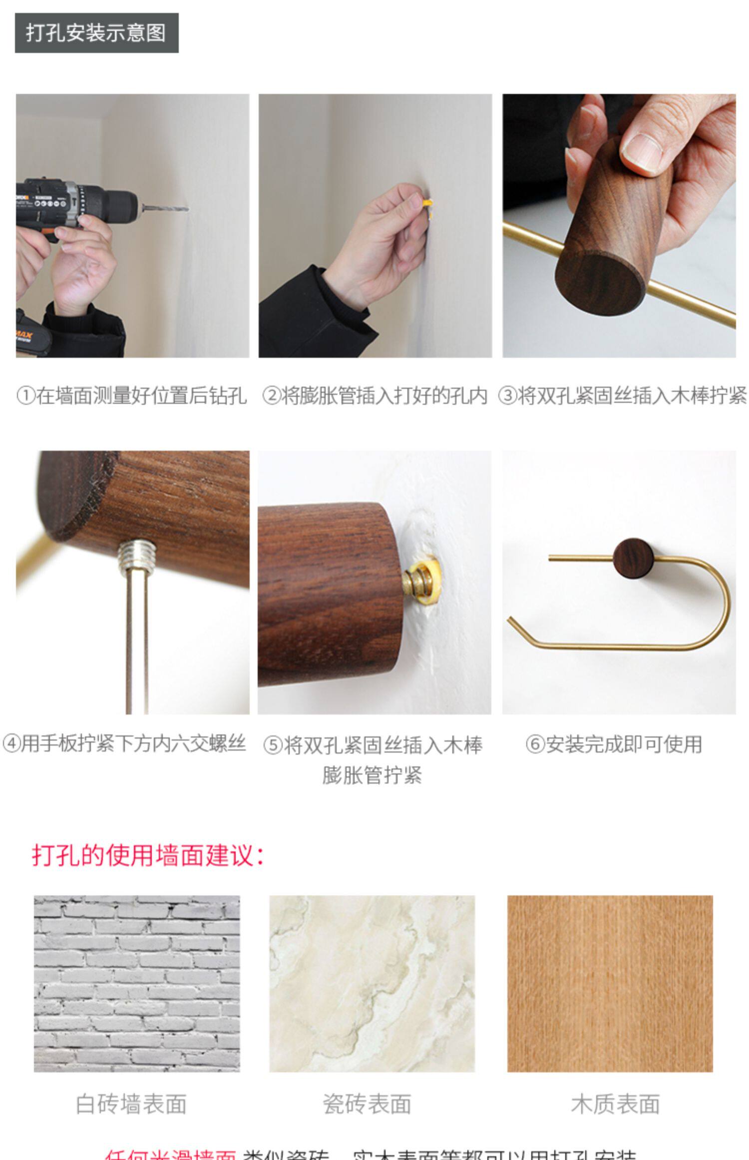 - Черный грецкий орех и деревянная бронзовая ткань стойка