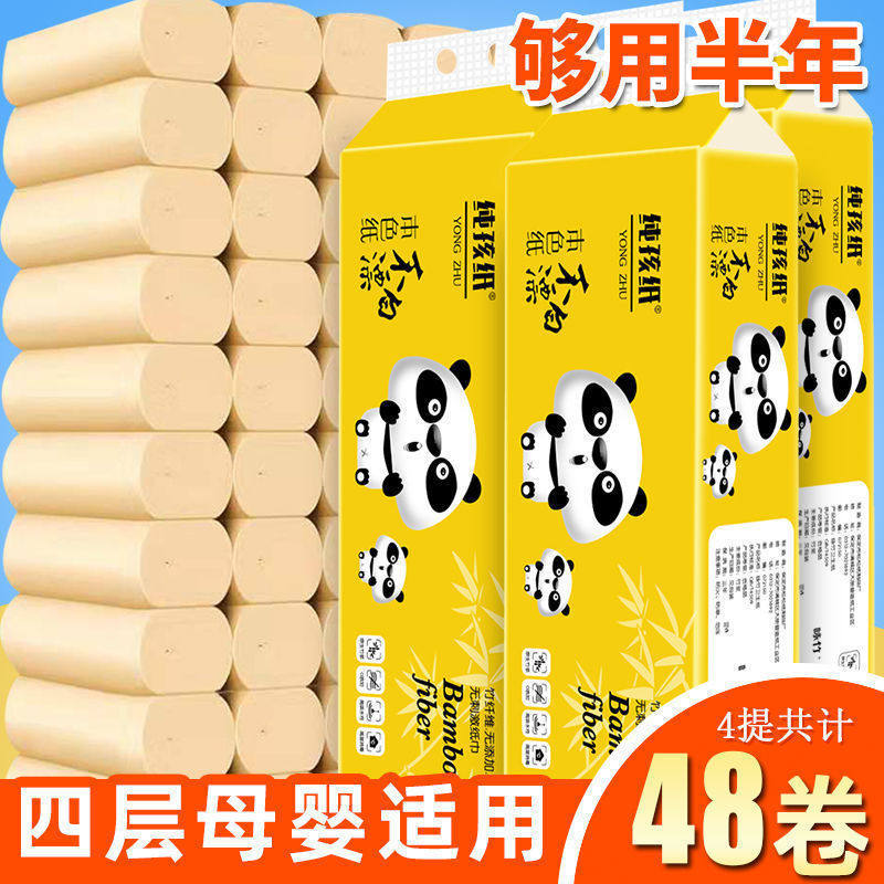 [72 объема огромного количества годового наряда] Четырехбарная бамбуковая мякоть, рулонная бумага, туалетная бумага Домашняя рулонная туалетная бумага 12 томов