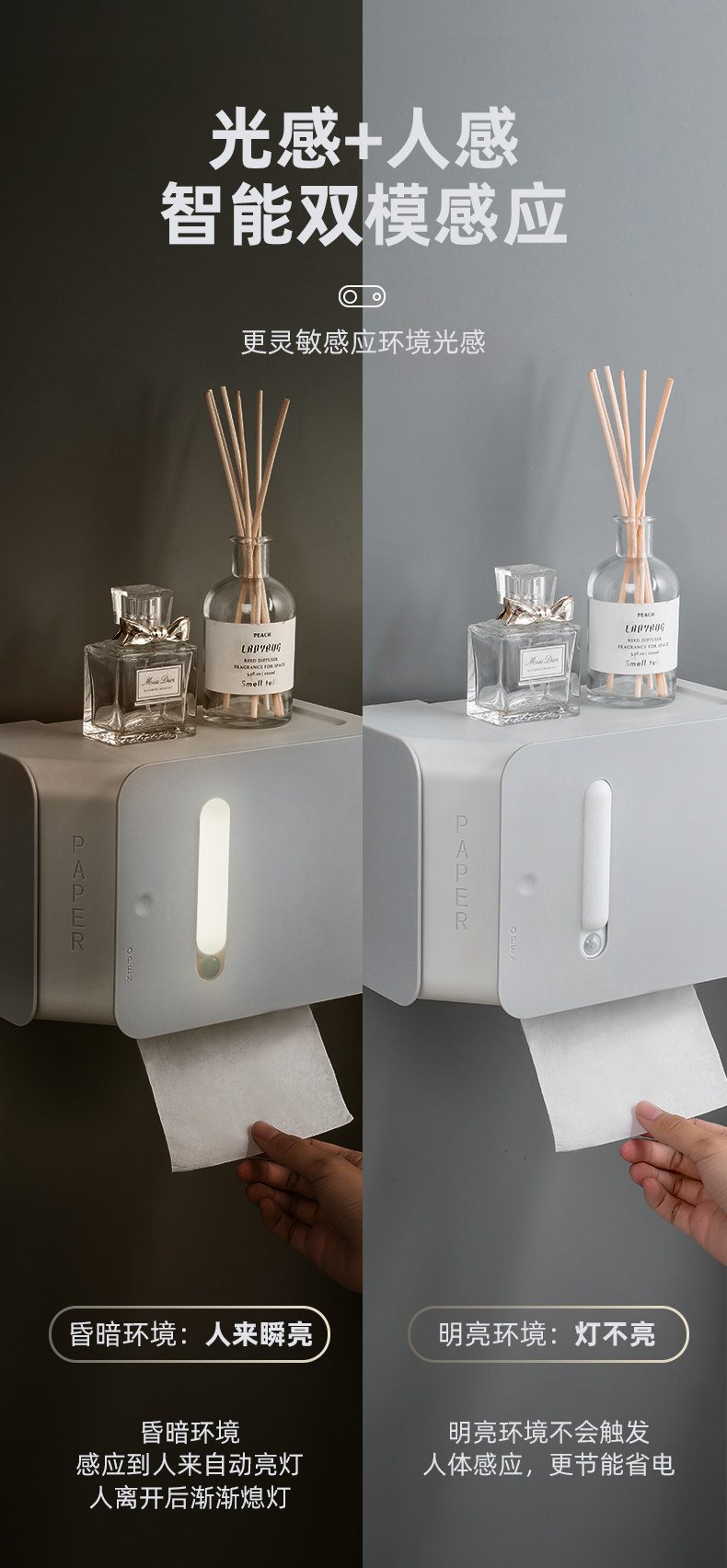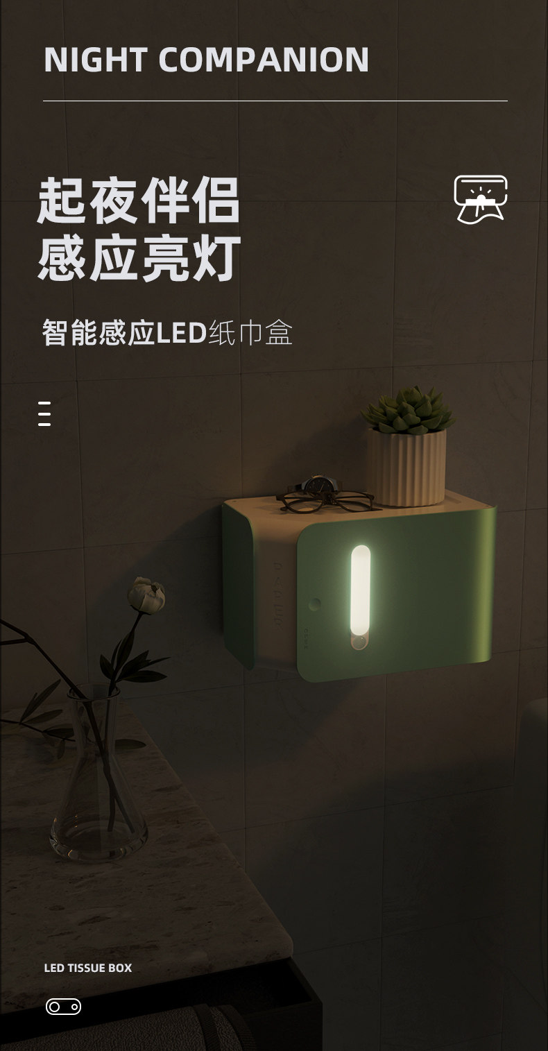 Интеллектуальное восприятие маленькая ночная легкая туалетная бумага коробка коробка коробка картонная картонная бумага для туалет