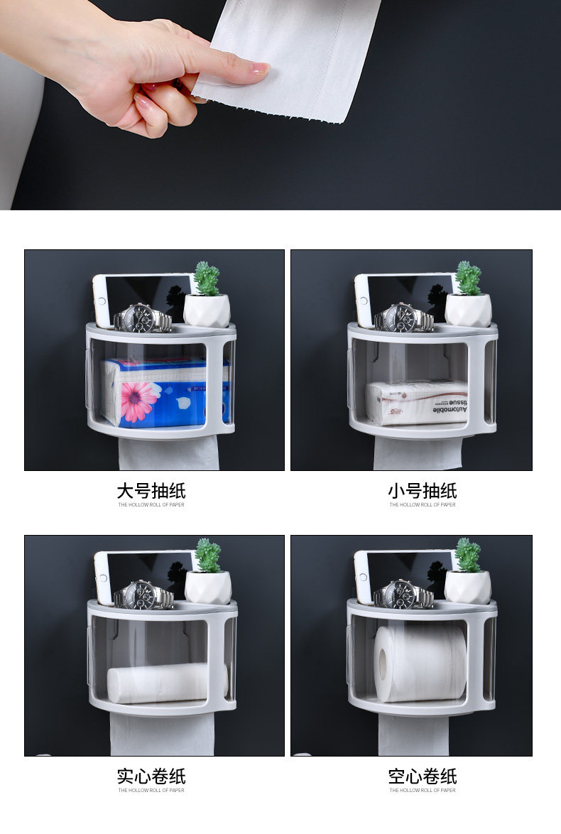 Домохозяйственная стена -туалетная туалетная рукающая бумага для ткань коробки для туалетной бумаги Перекачанная ткань стойка туалетная бумага Бесплатные отверстия