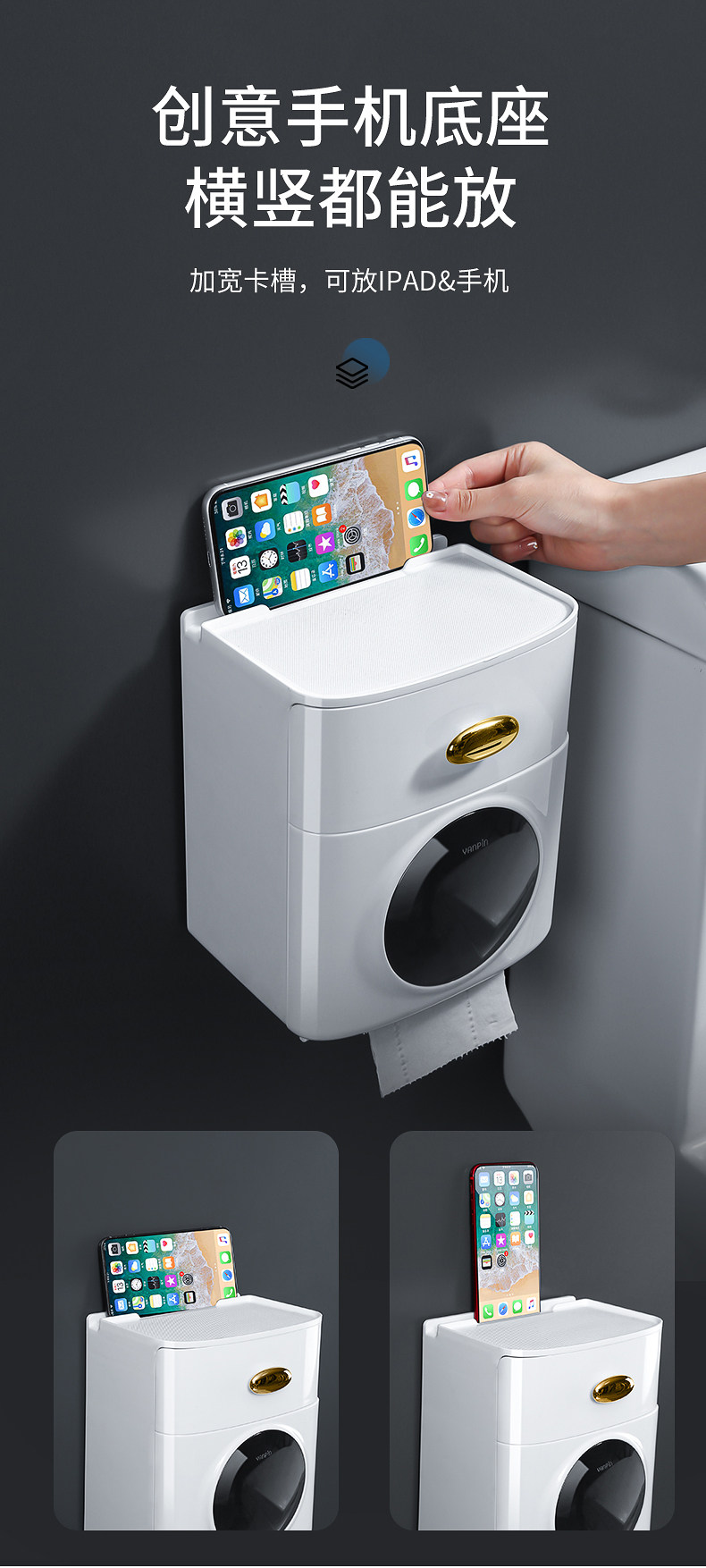 Включите туалет для бумажной паутины, туалетную стенку, безрезультатно -трубку, водонепроницаемую, водонепроницаемую туалетную бумагу катящую бумажную коробку