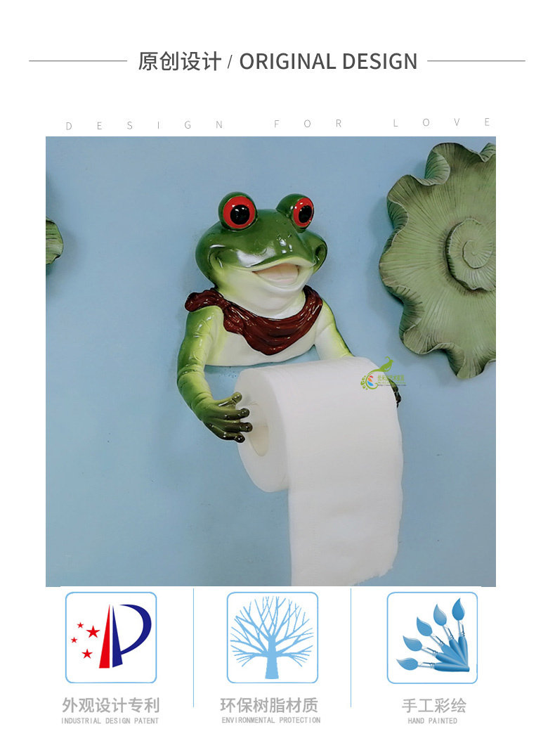 Творческая лягушка без удара -Бесплатная бумажная стойка туалетная туалетная туалетная стена -липкое полотенце для животных.