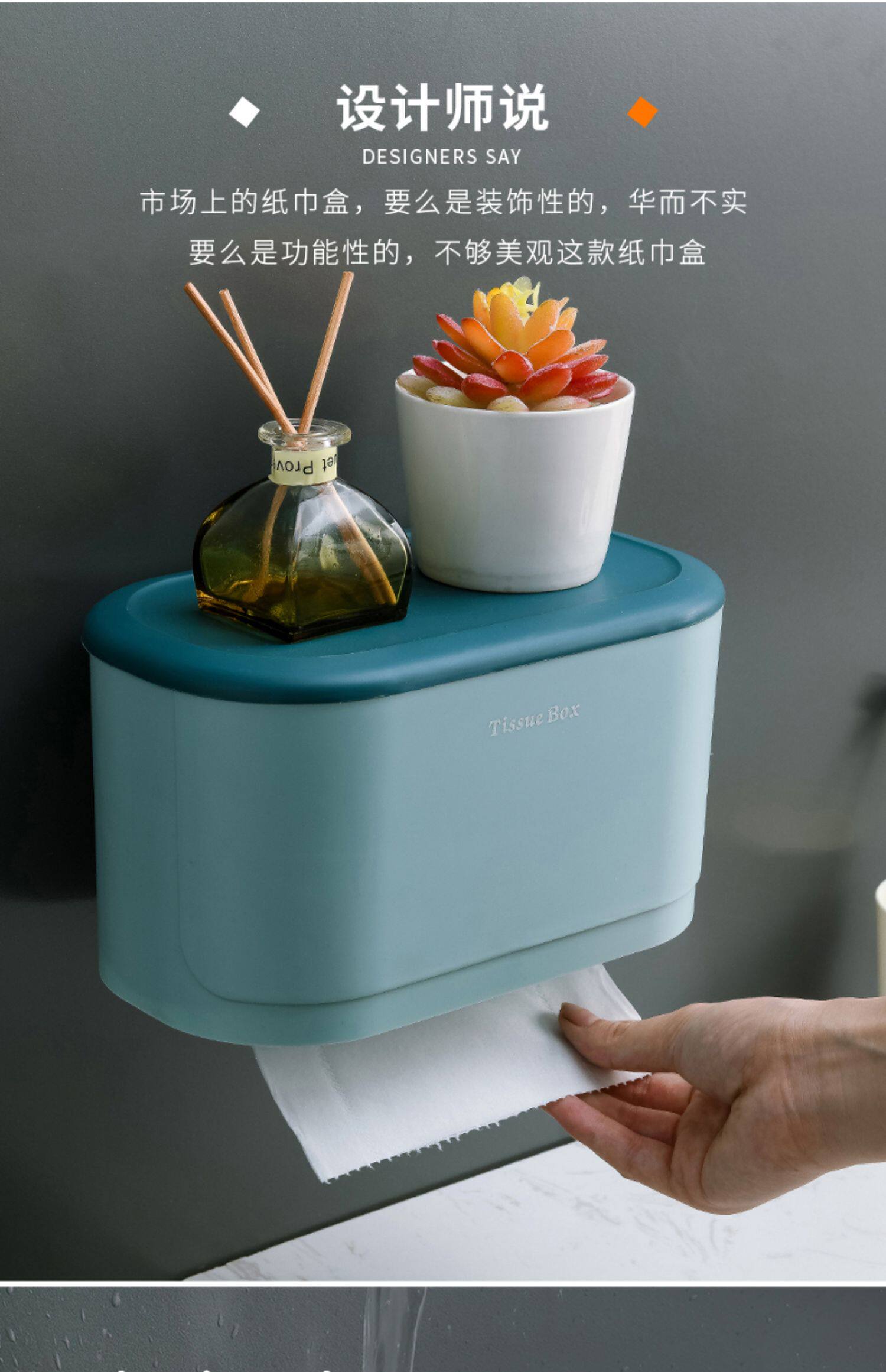 - Коробка для тканей для ванной [синий и белый] с моделями крючков