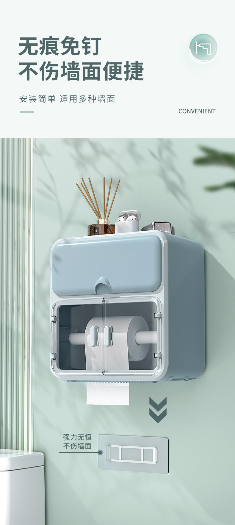 Понч -Бесплатная бумажная коробка, туалетная световая роскошная ветер -Проницаемое на стене -туалетная бумага с туалетной бумагой.