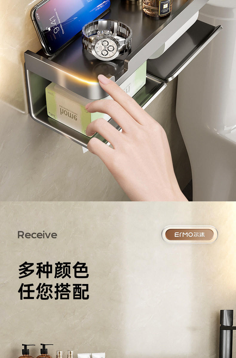 Коробка для тканей для ванной комнаты туалетная бумага для туалетной бумаги для насосной коробки Бесплатная удара для ванной комнаты туалетная бумага стена -установленная коробка