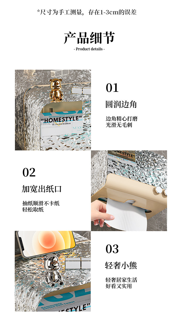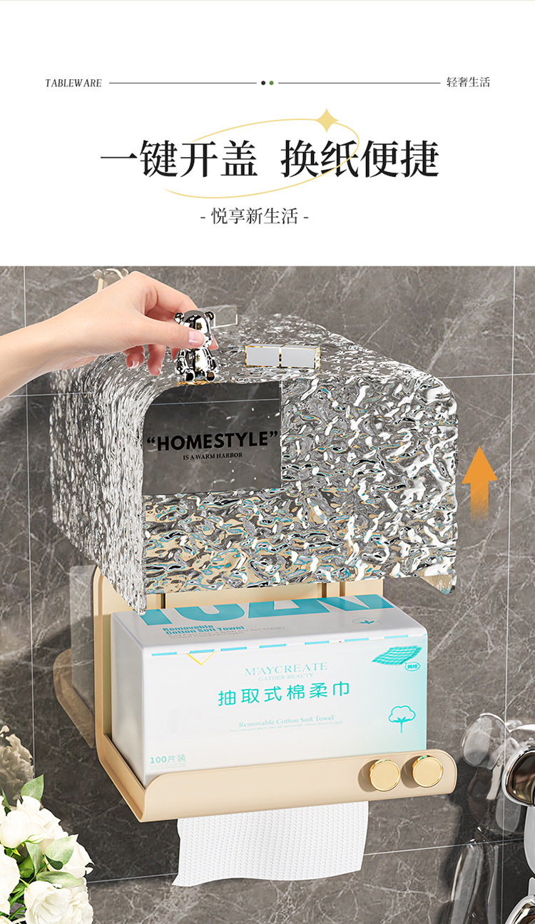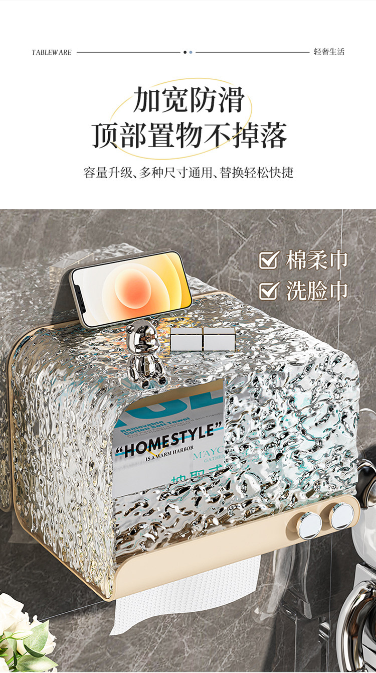 Увеличение туалетной бумажной коробки для ванной комнаты для насосной бумаги на крышке водонепроницаемой водонепроницаем