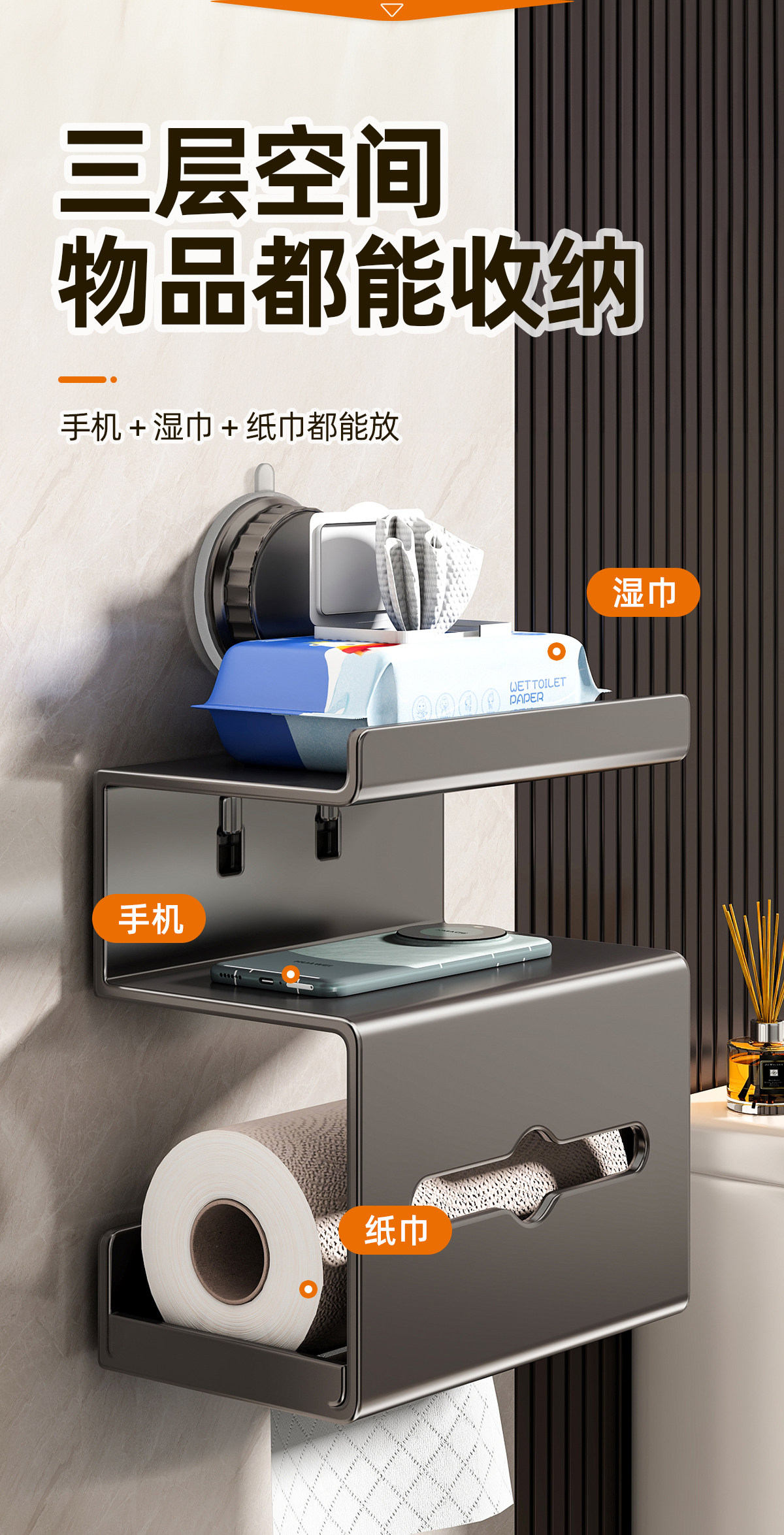 优勤 Коробка для салфеток на присоске, коробка для туалетной бумаги для ванной комнаты, настенный держатель для рулонной бумаги, стойка для хранения бумажных полотенец без дырокола