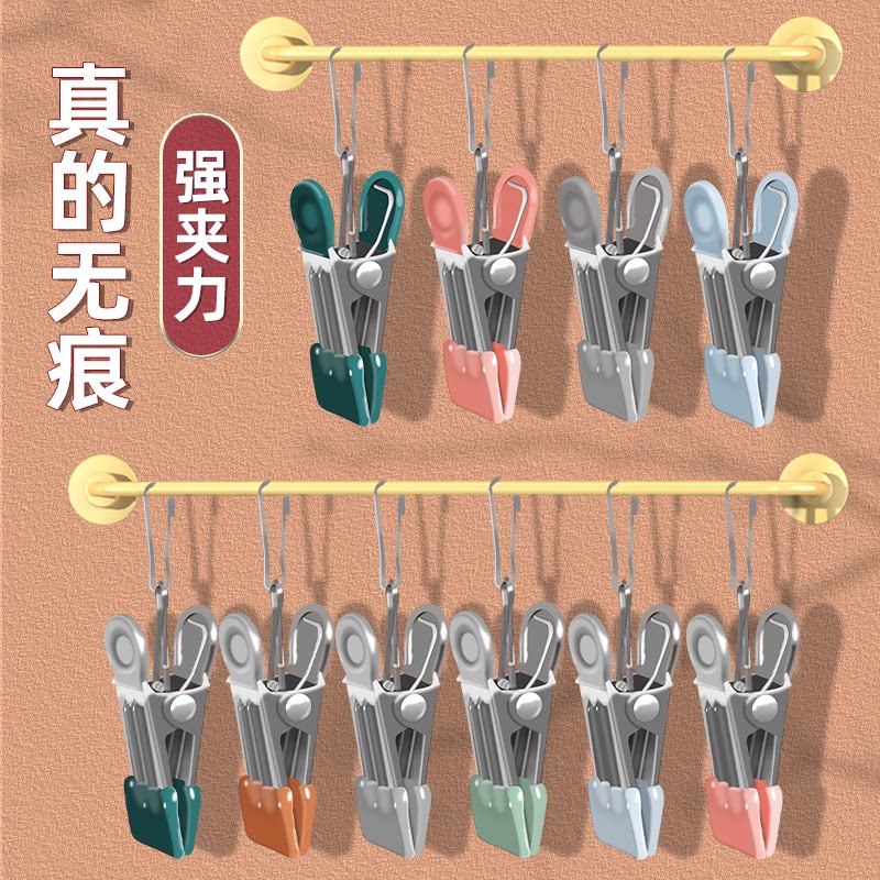 Ветрозащитный зажим для сушки одежды, прочный бесследный зажим из нержавеющей стали, железный зажим с крючком, бытовой зажим для сушки одиночной одежды
