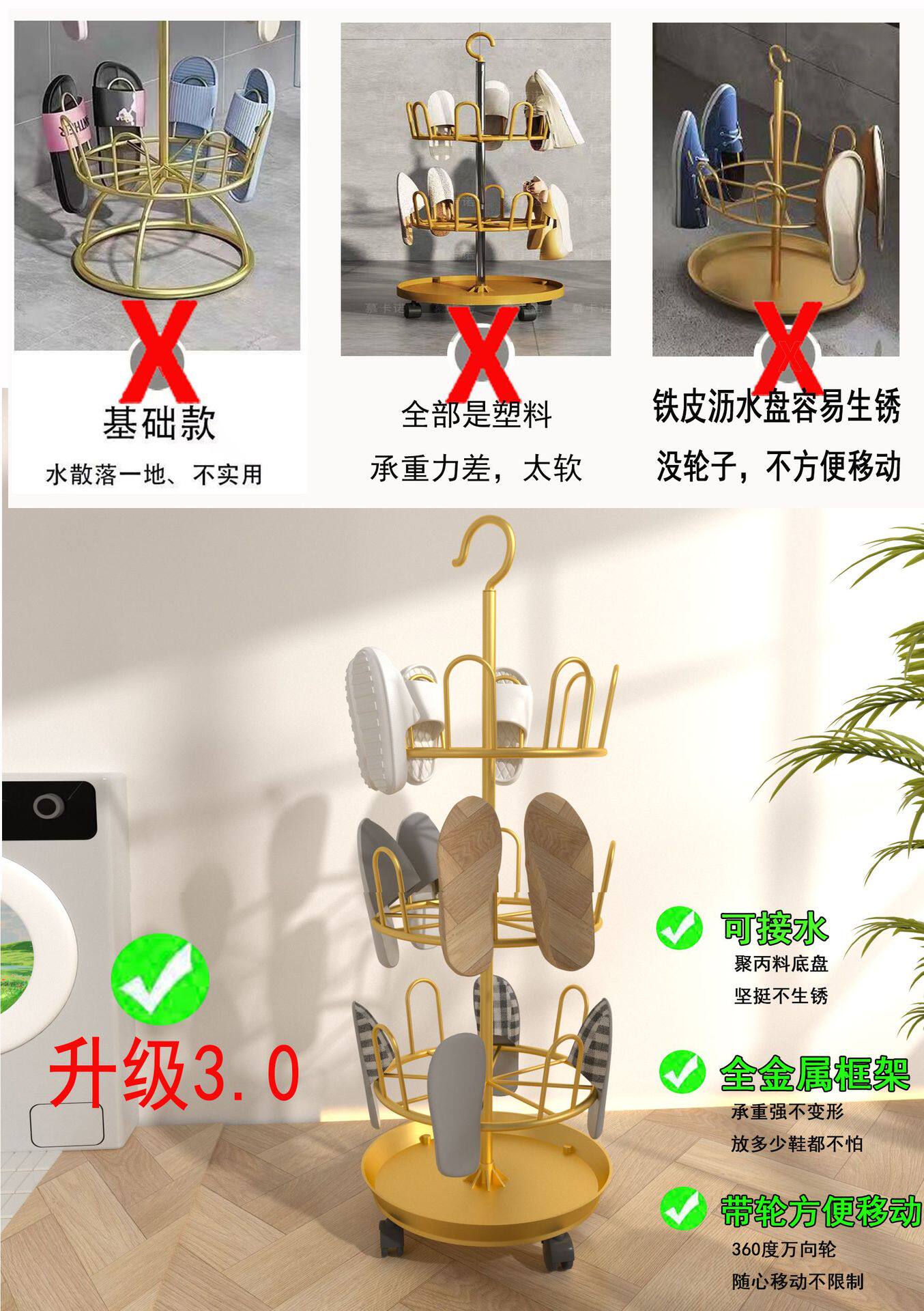 Сушилка для обуви, открытый балкон, бытовой многофункциональный напольный поддон для воды, универсальная полка для сандалий на колесиках, артефакт для сушки обуви