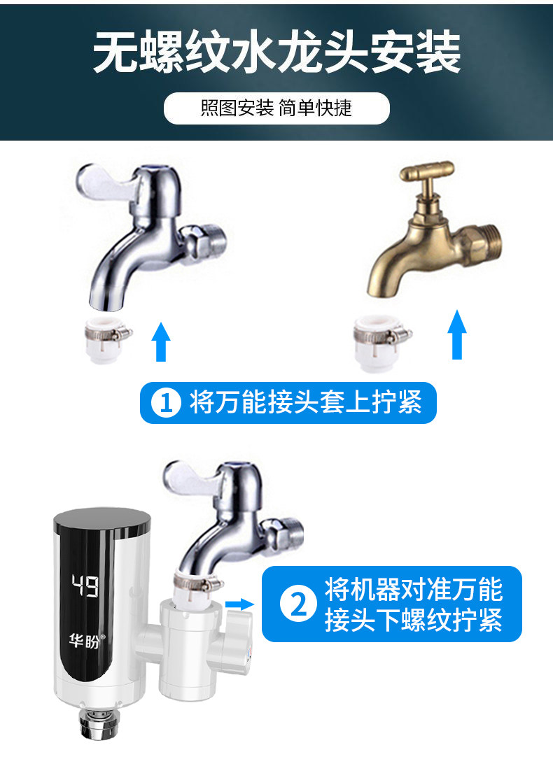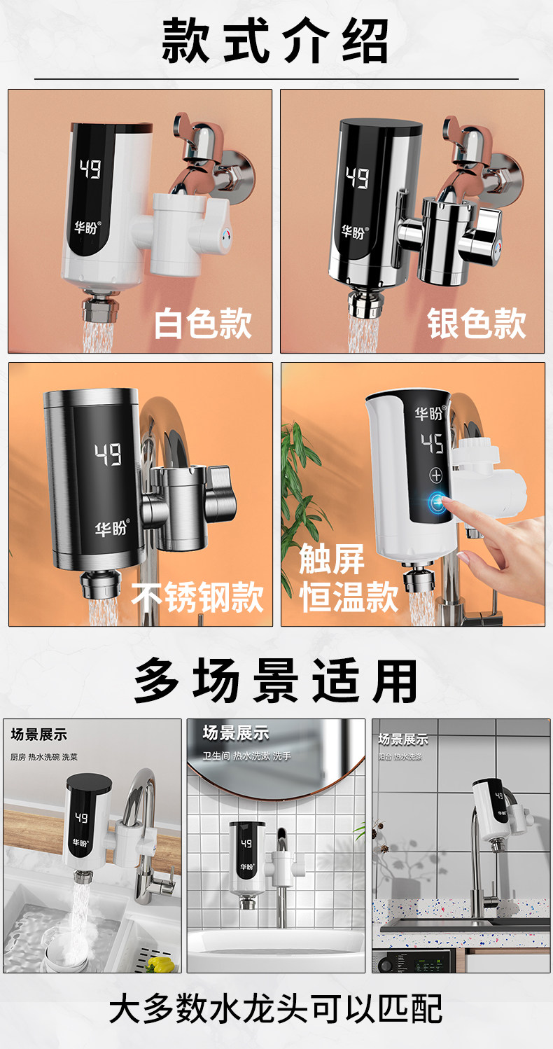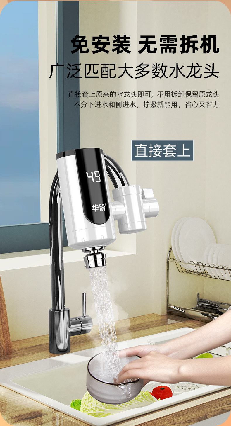 华盼 Электрический водный смеситель, горячее отопление, быстрая тепловая кухня, ванная комната для ванной комнаты электрический водонагреватель над водой.