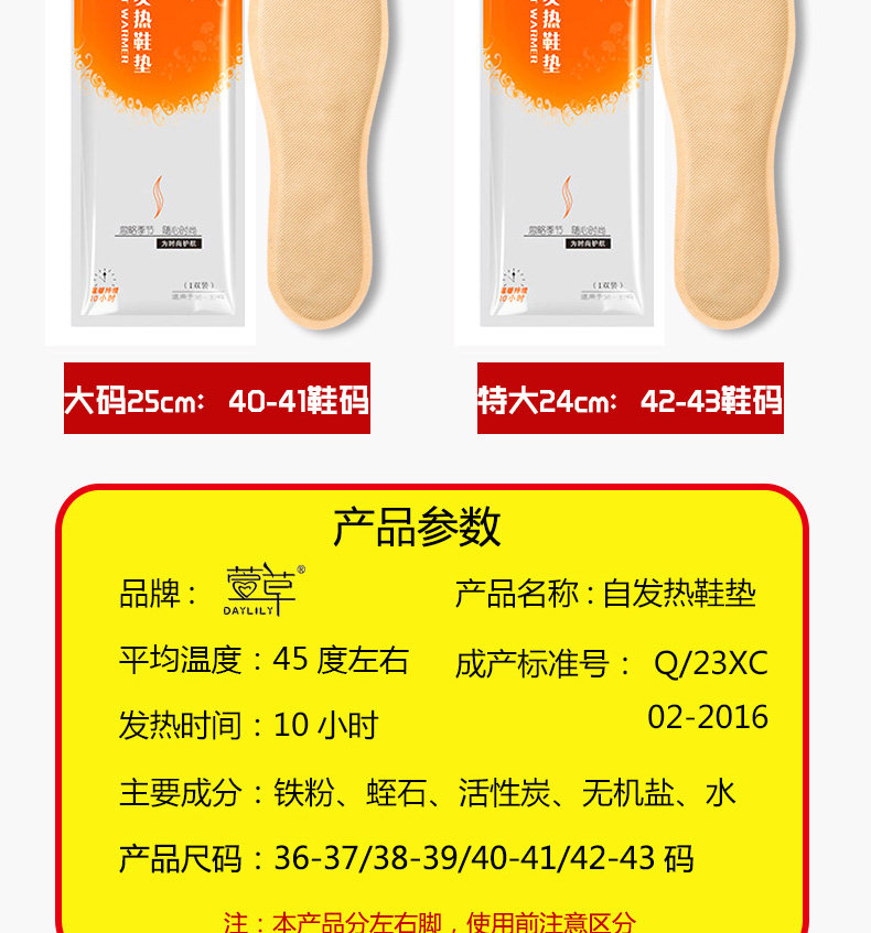 萱草 Большие удерживающие тепло стельки, длинный патч для ног
