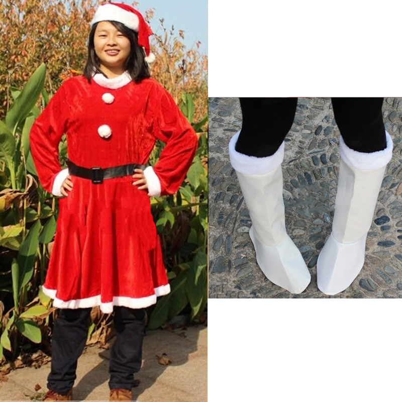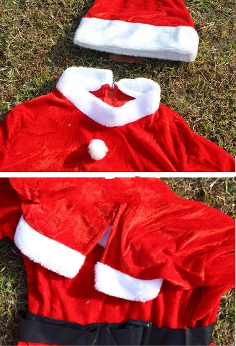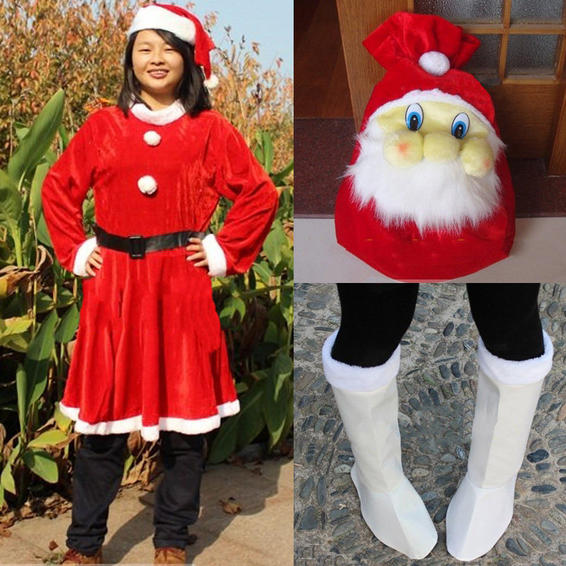 5 -Peece Set включает в себя: платье, шляпа для юбки Белые ботинки, золотая бархатная рождественская сумка 5 5