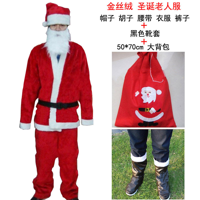 5 -Peece Set включает в себя: платье, шляпа для юбки Белые ботинки, золотая бархатная рождественская сумка 5 5