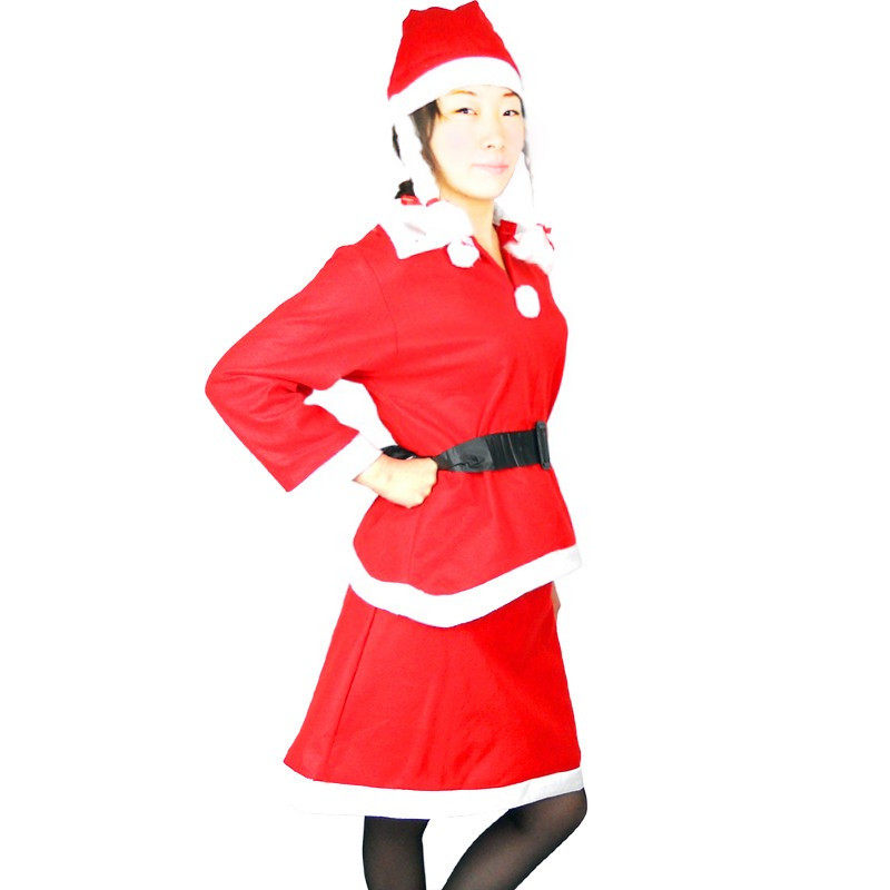 [Технические характеристики] Средний взрослый, 1 набор рождественской женской одежды (топ+юбка+шляпа+ремень)
