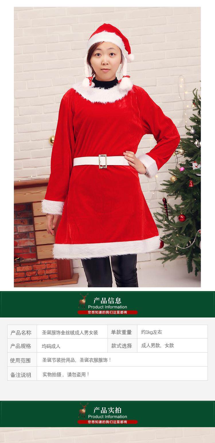 Рождественский костюм Взрослые дети Санта -Клаус Золотой Бархат Супер мягкий рождественский костюм