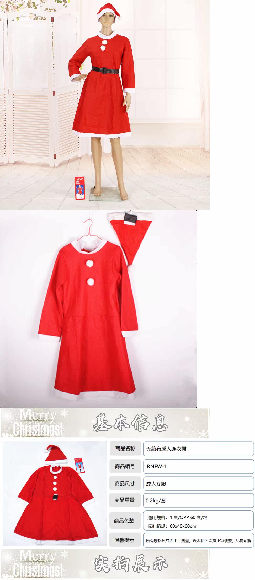 Платье из нетканого материала для взрослых, рождественский комплект, 3 шт