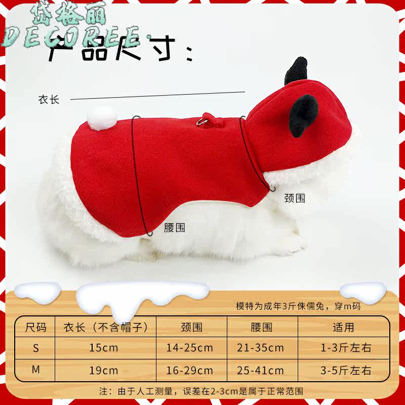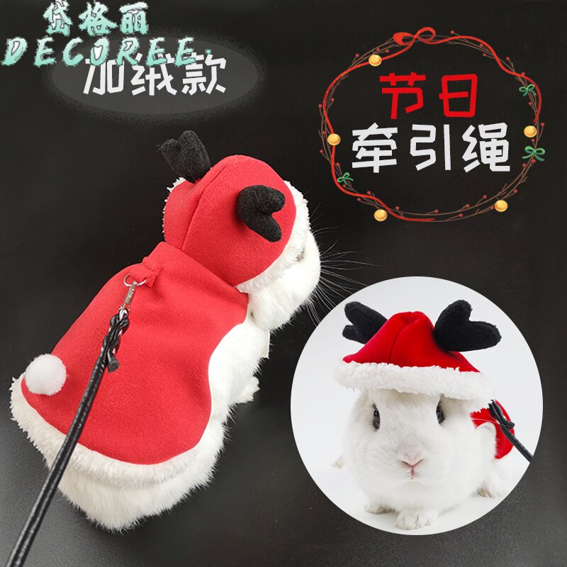 Кроличья одежда Тропильная веревка милая рождественская новогодняя одежда Пет кролика теплой зимняя одежда утолщенная и бархатная