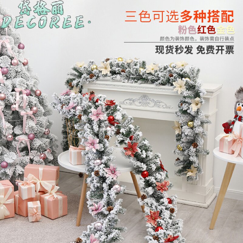 Рождественское украшение из флокированного ротанга 2,7 метра с зашифрованным снегом, спрей из ротанга, окно, дверь, висит рождественское украшение, посылка, гирлянда