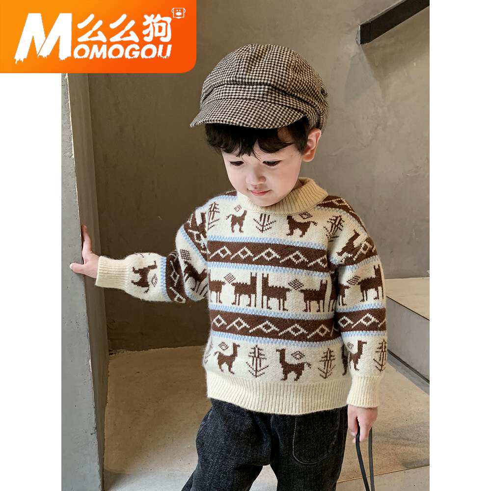 Свитер для мальчиков, детский трикотажный демисезонный пуховик, увеличенная толщина, 2020, в западном стиле, в корейском стиле