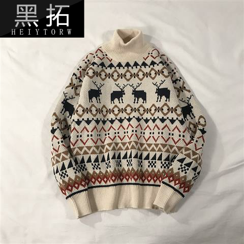 Красный рождественский зимний модный японский дизайнерский свитер для влюбленных подходит для мужчин и женщин, популярно в интернете