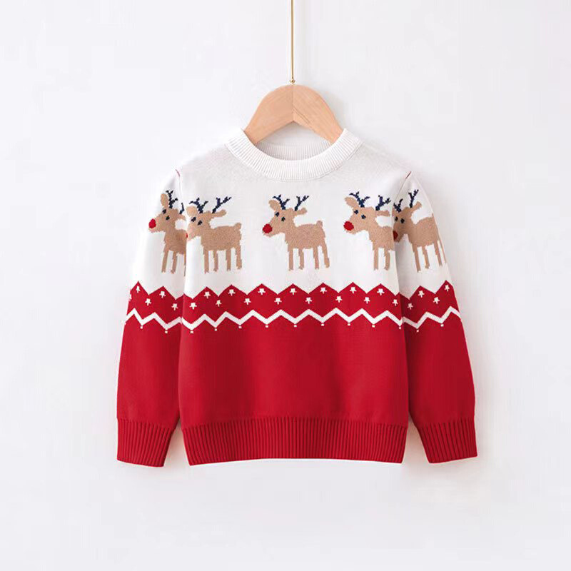 Рождественский детский красный шерстяной трикотажный свитер