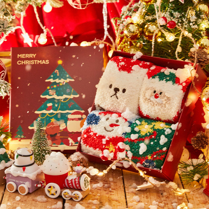 Рождественские носки, подвеска, милая демисезонная коралловая бархатная удерживающая тепло подарочная коробка, подарок на день рождения