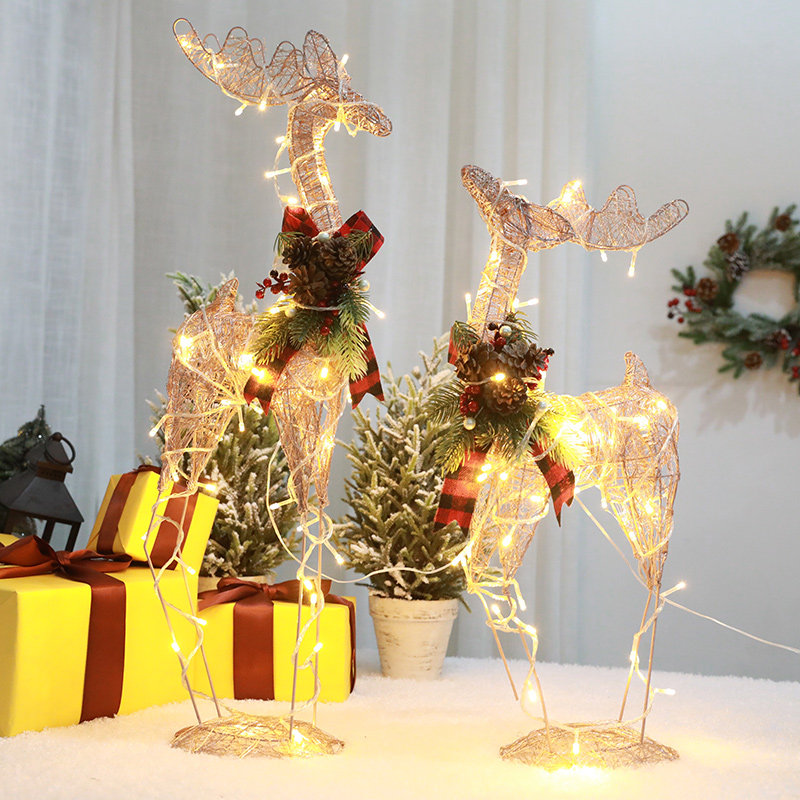 Мягкие голубые европейские рождественские украшения, железный светящийся рождественский олень, рождественский олень, тележка для отеля, украшения для торгового центра
