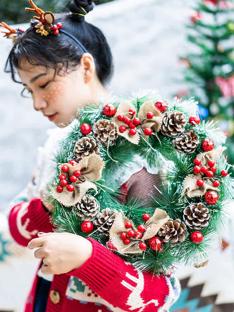 Весь круг сосновых игл сосны фрукты рождественская дверь кольцо цветочное кольцо кольцо ручной дверь висят цветочное кольцо американское сельское рождественское подарки