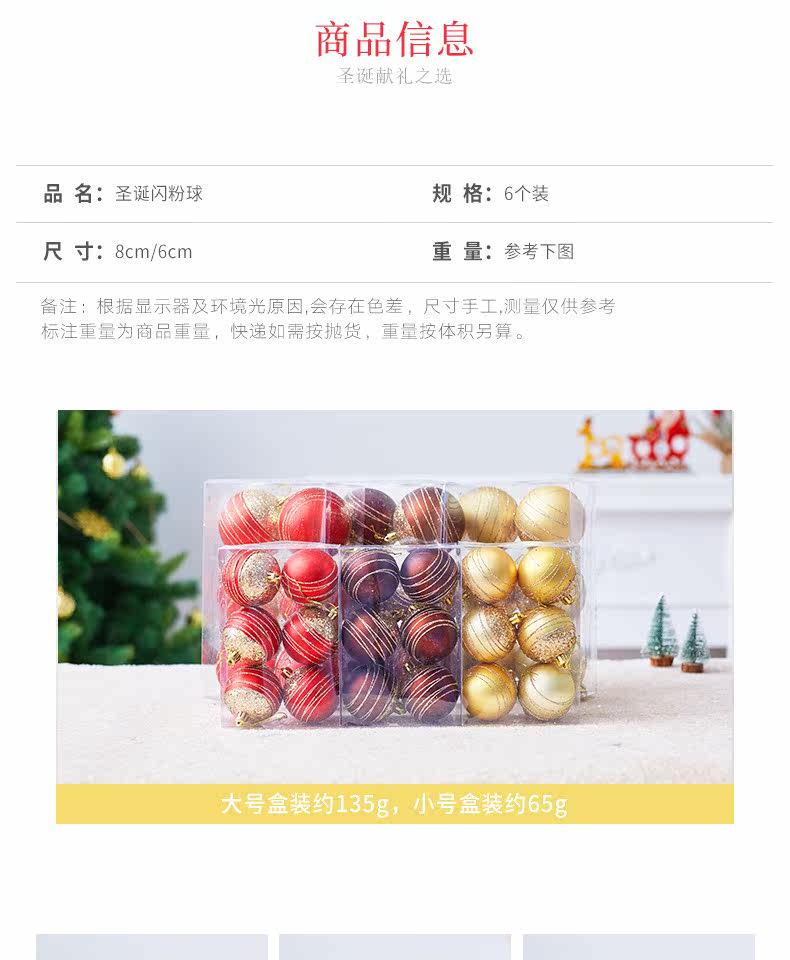 Рождественское украшение мяча 6/8 см. Красочная окрашенная коробка, Рождественская елочная подвесная подвесная подвесная украшение рождественские декоративные принадлежности