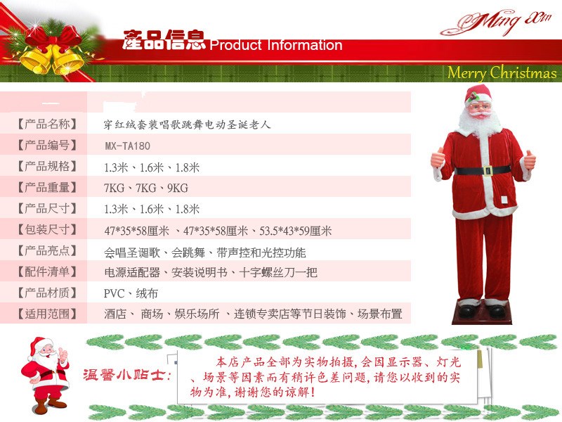 Электрический Санта -Клаус 1,8 метра, торговые центры Saxo Swing Dancing приветствуют украшения пожилых магазинов