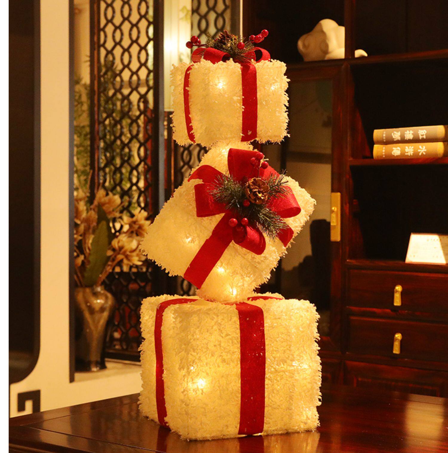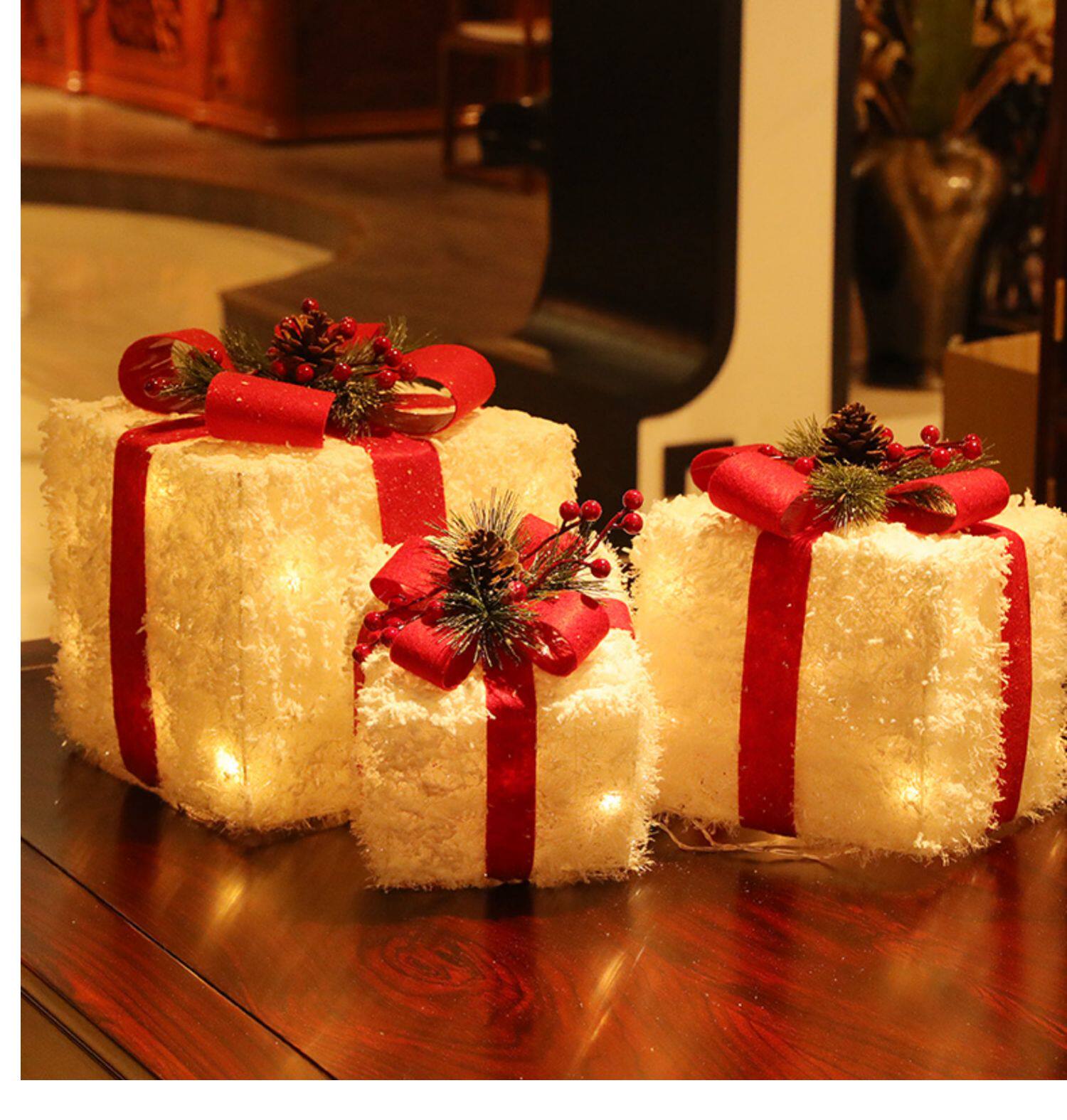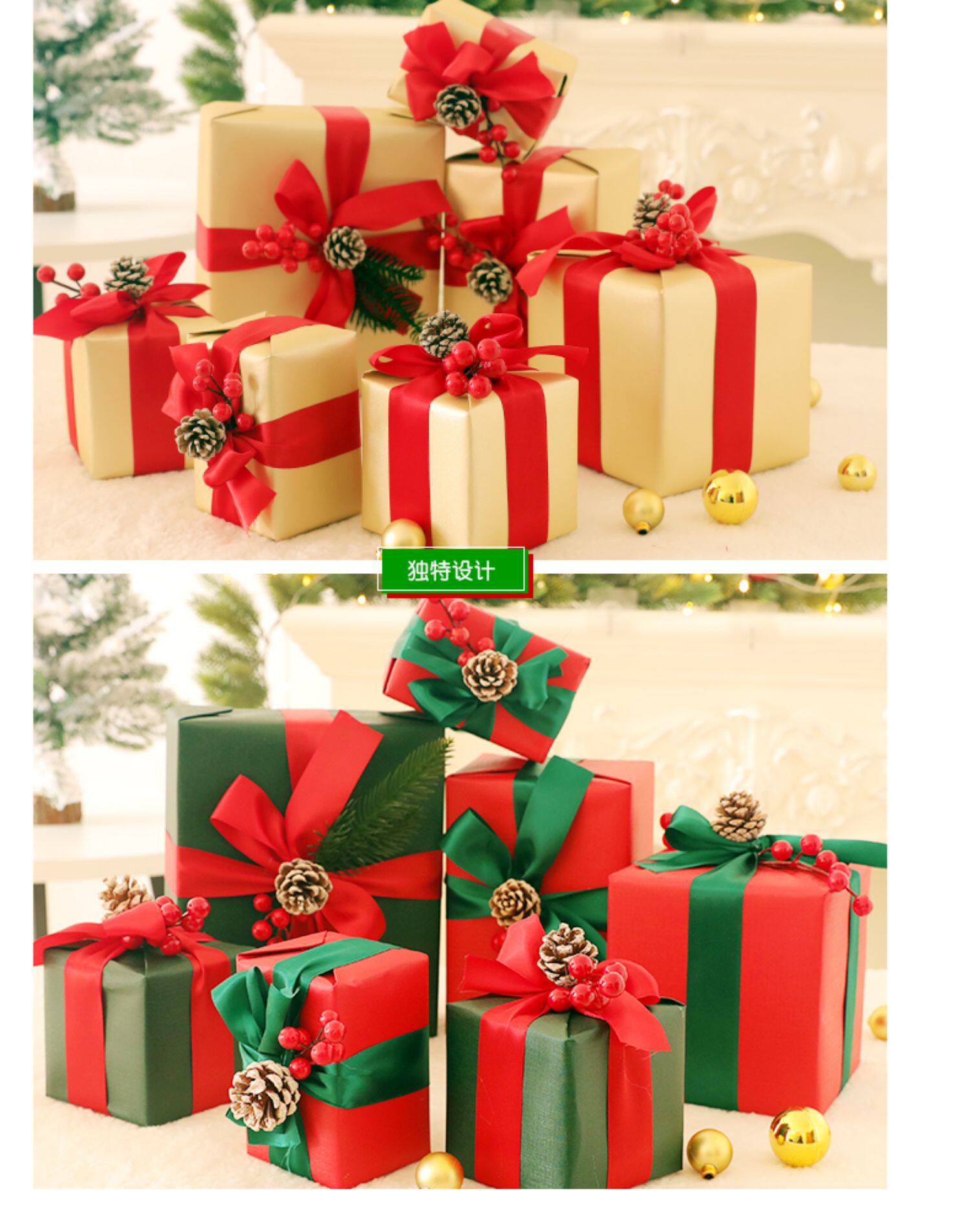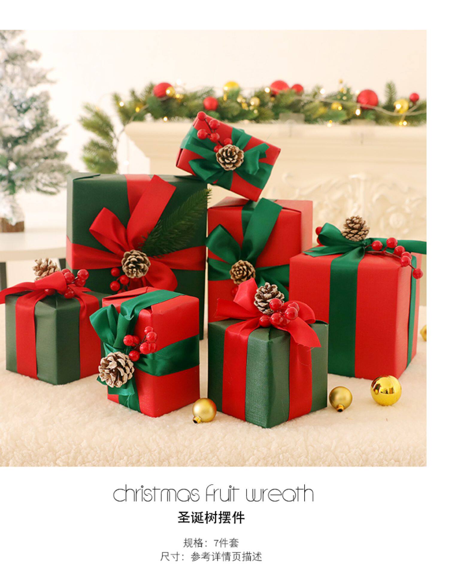 - Сосновые шишки с красной и зеленой подарочной коробкой [набор из 7 установок]