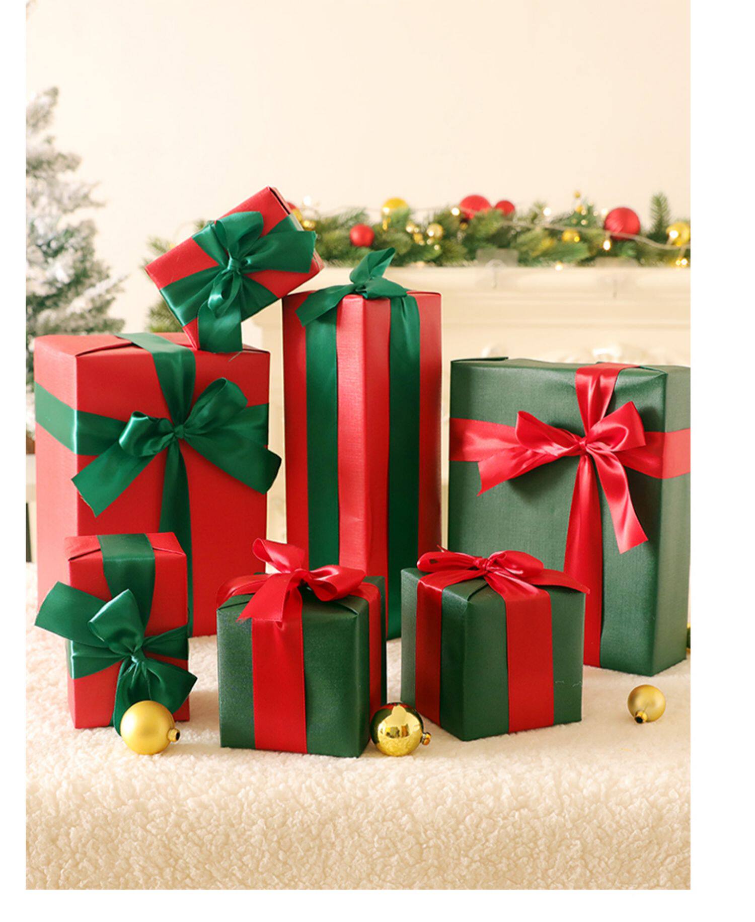 - Красная и зеленая подарочная коробка [набор из 7 установок]