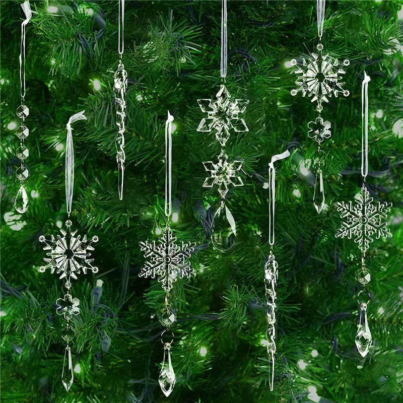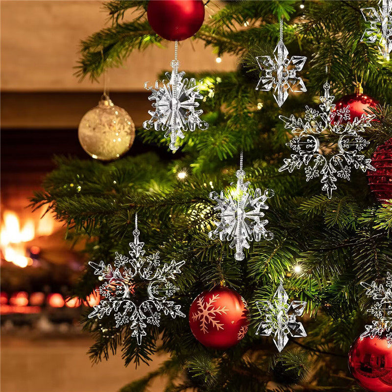 Подвеска, акриловый прозрачный декор, комплект с бантиком, со снежинками, подарок на день рождения