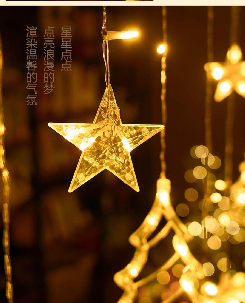 Рождественские украшения звезда фонаря фонаря фонаря фасаж световой струны, полные небесных рождественских елок