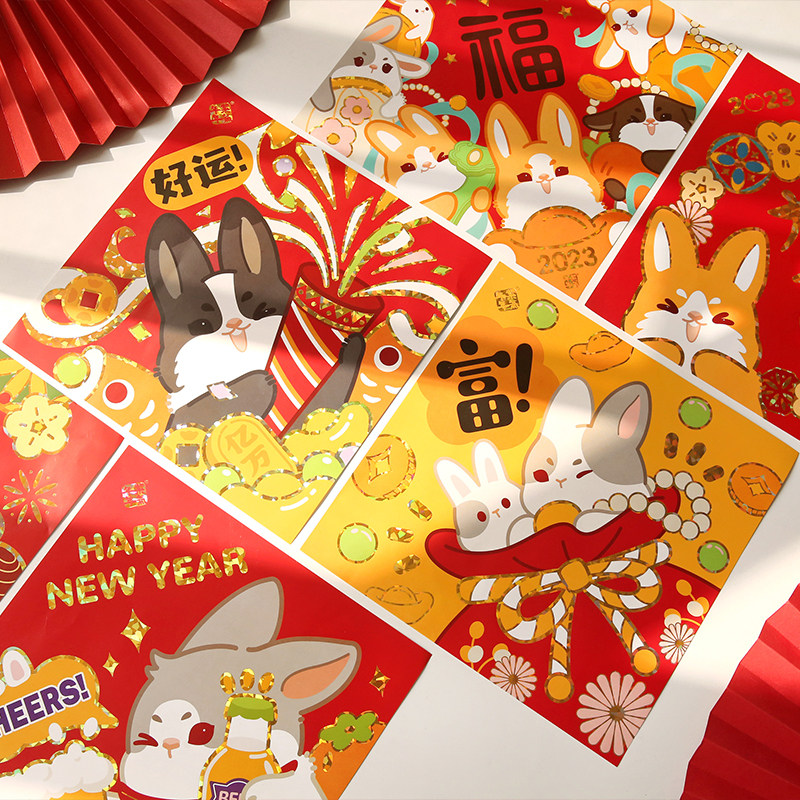 - Золотые ворота похлопают в год кролика -футу Хан Чун (набор из 6 штук)