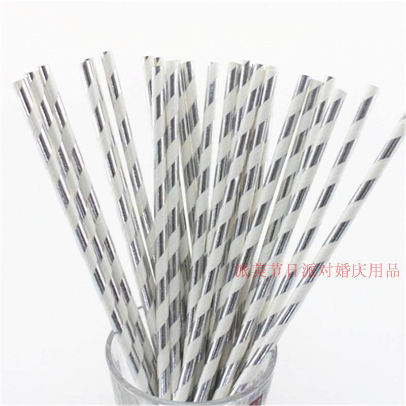 Вечеринка снабжает горячее золото и горячую серебряную бумагу соломинки с творческой бумагой соломинка Liang Jinliang Silver Stripes 25 корней