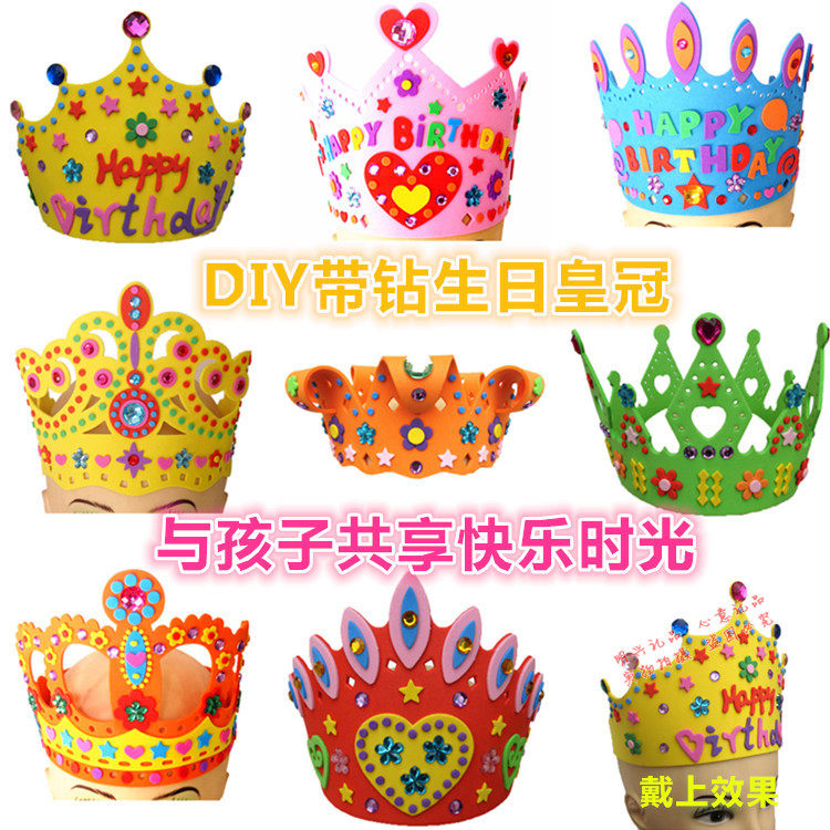 Интерактивные игрушки для родителей-ребенка, DIY с вашим ребенком или приглашайте хороших друзей вашего ребенка прийти к вам домой, и дети сделают это вместе и повеселились. После того, как дети закончат, они будут носить свои собственные шляпы на день рождения, сделанные короной вместе, что очень счастлива!Мягкий материал EVA регулируется по размеру и красиво изношен.