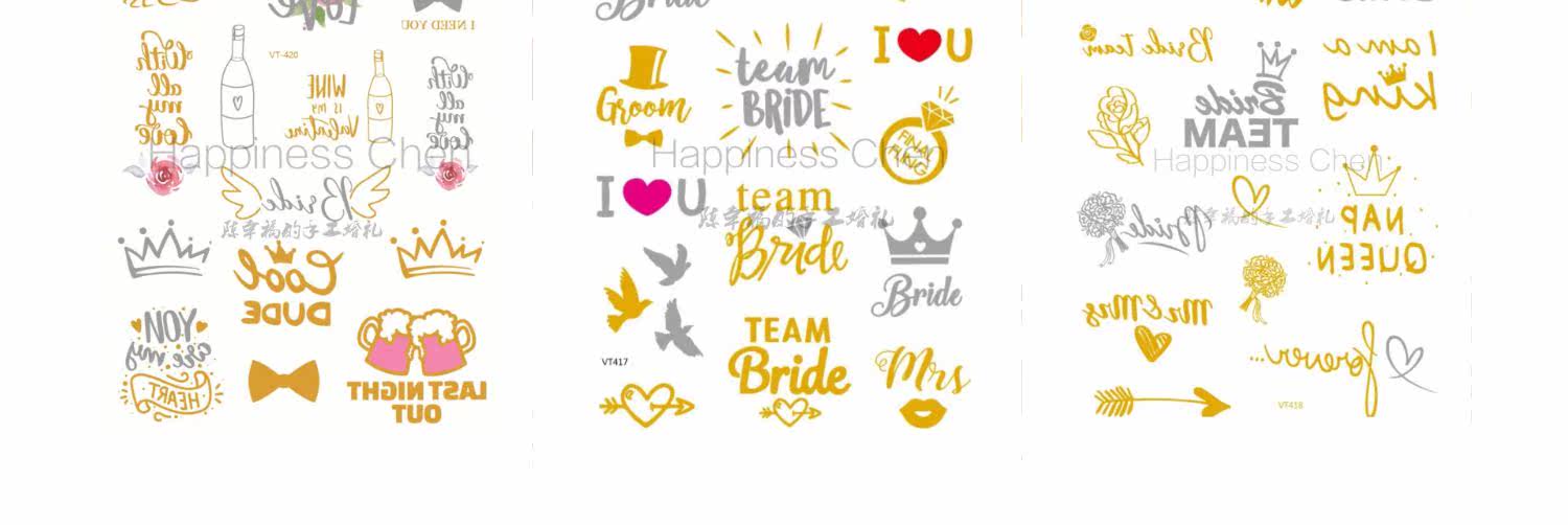 Тату наклейки для невесты, большая наклейка, новый цвет, для подружки невесты, комплект