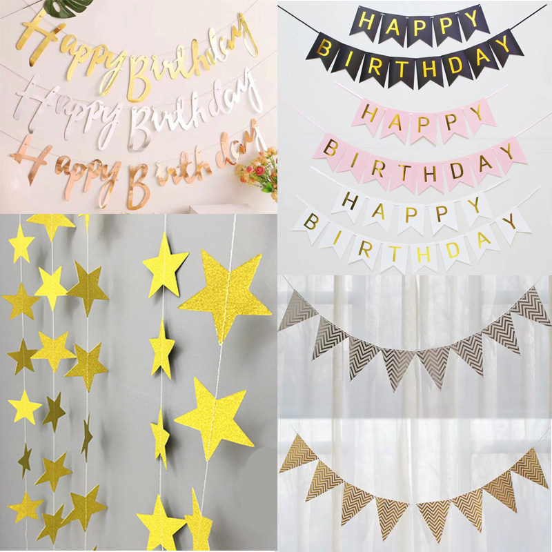 День день рождения Ювей Баннер предложение Пентагона Звездная бумага бумага на вытягивании флаг флага Струны горячее золото выполняют десертное десертное десертное десерт