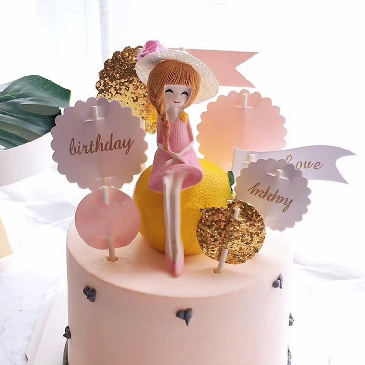 Украшение торта на день рождения украшения маленькие свежие фрукты Девушка соломенная шляпа богиня лимонная девушка десерт запека