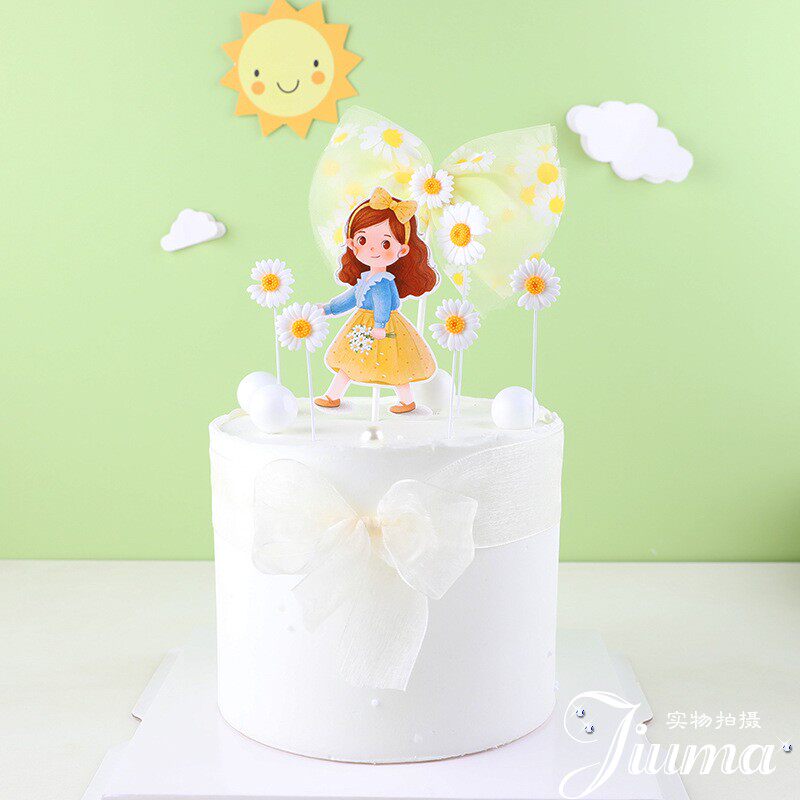 Ромашка для маленькой девочки, ромашка, бант, украшение для торта, интернет-знаменитости, креативное украшение для торта, помадка, цветочки