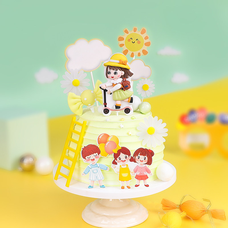 Запеченная торт декоративный скейтборд Девушка мягкая гончарная заглушка -В летнем цыпленок маленькая солнечная маленькая девочка аккаунт