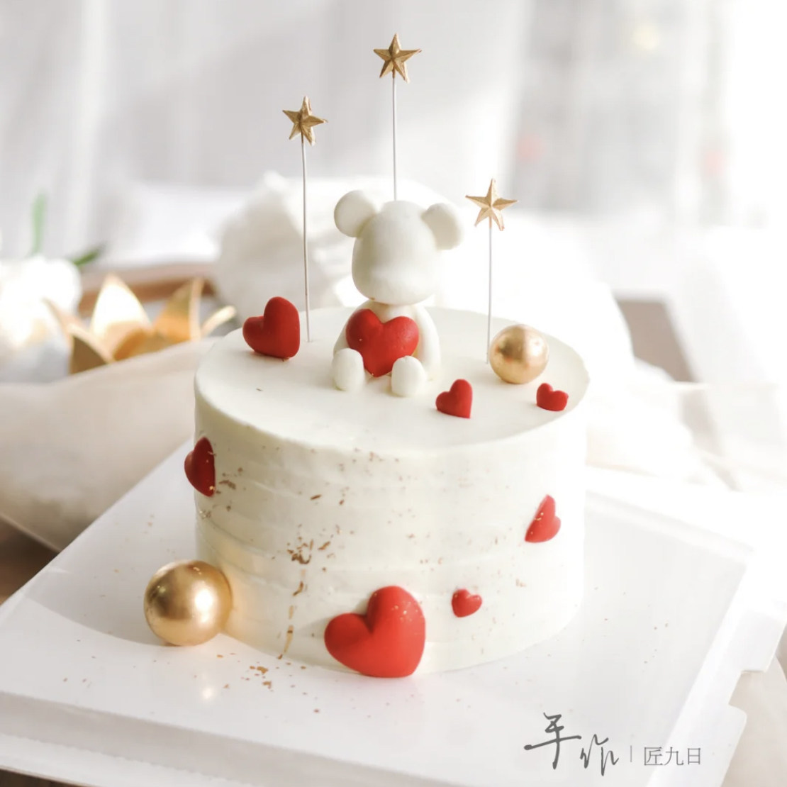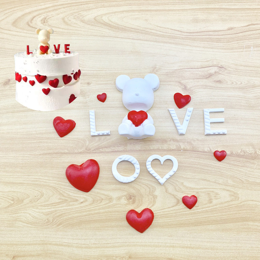 Китайский торт из помадки с медвежьим признанием ко Дню святого Валентина, украшенный сушеными шоколадными вредителями