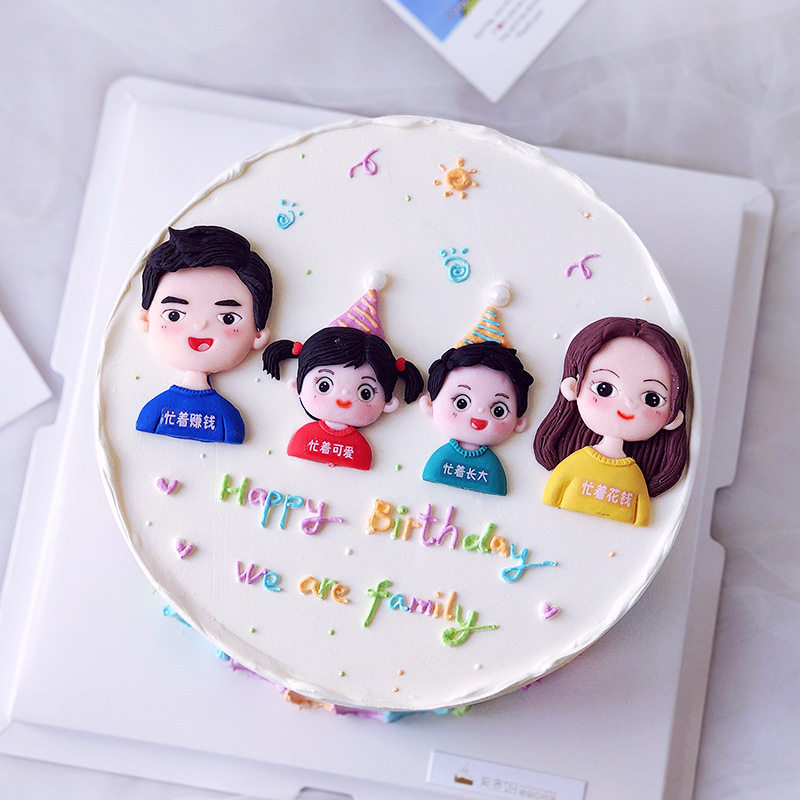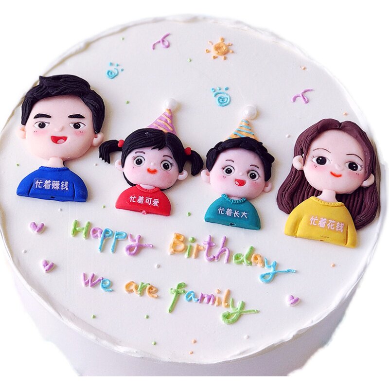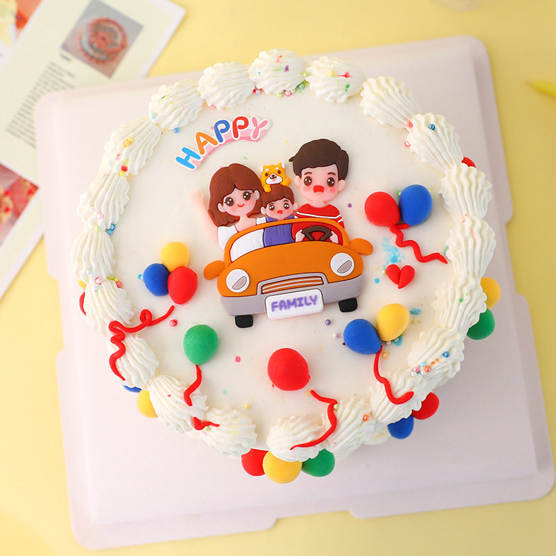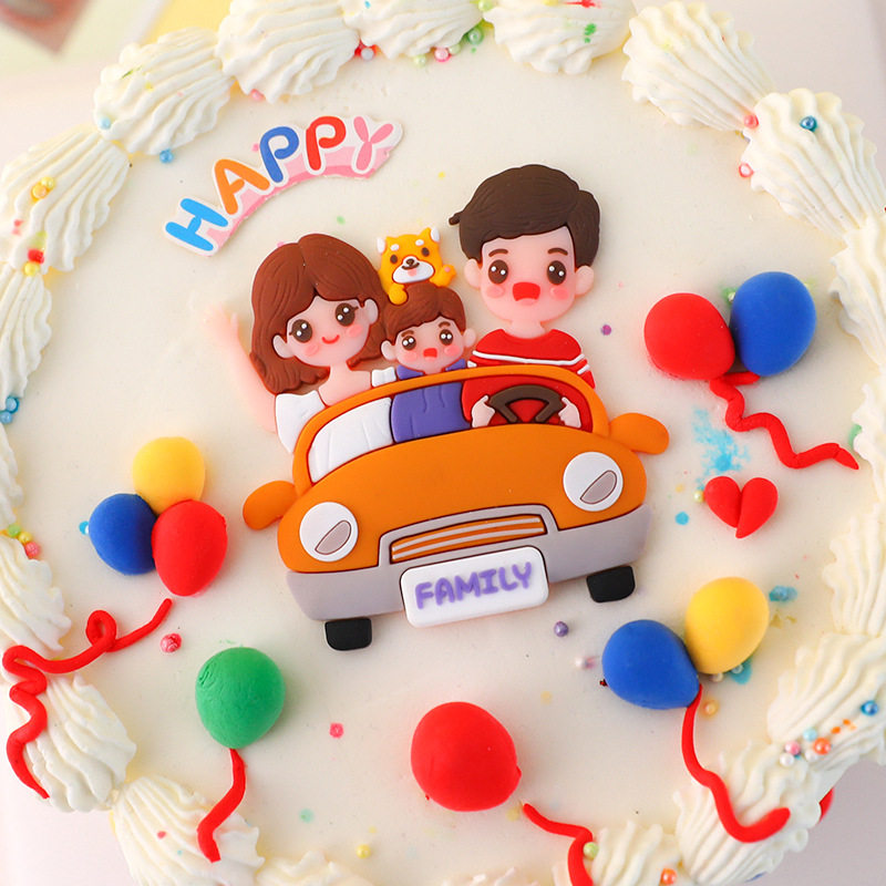 Счастливая семья из четырех пирожных, чтобы украсить всю семью, фукуку, кемпинг -автомобиль по кемпинге, мягкий керамический мягкий клей