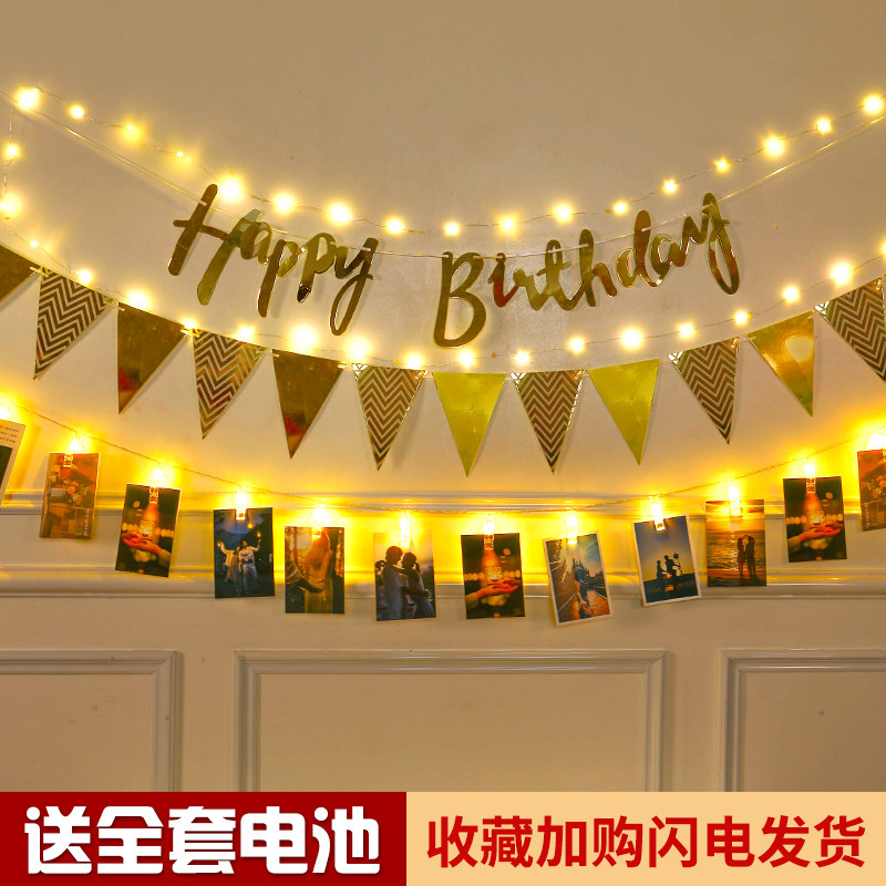 Флаг дня рождения декоративные принадлежности светящаяся лампа фото баннер, подруга Сяохонгу детского возраста, счастливая атмосфера