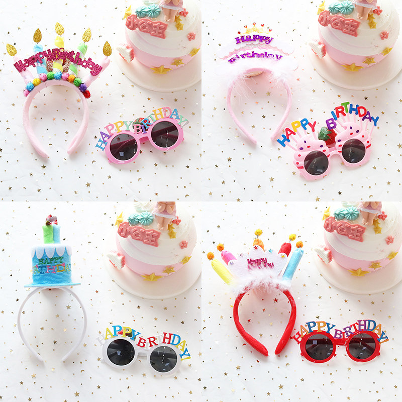 Xiaohongshu в том же стиле ins, очки на день рождения, повязка на голову для торта, милые забавные очки, вечерние реквизит для селфи