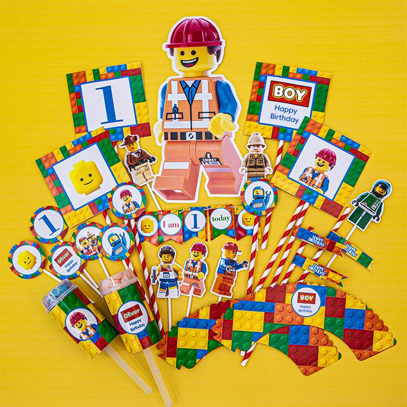 Детские игрушки на тему дня рождения, совместимые с Lego, макет сцены для вечеринки в честь 100-дневного юбилея, торт, десерт, украшение стола
