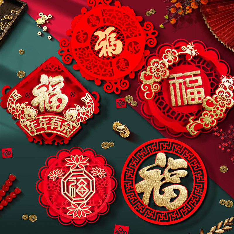 2024 Новогоднее украшение, наклейка на дверь в китайском стиле с китайскими иероглифами удачи, Новый год, креативный Новый год, трехмерное флокинг, весенний фестиваль, год дракона, наклейка на стену
